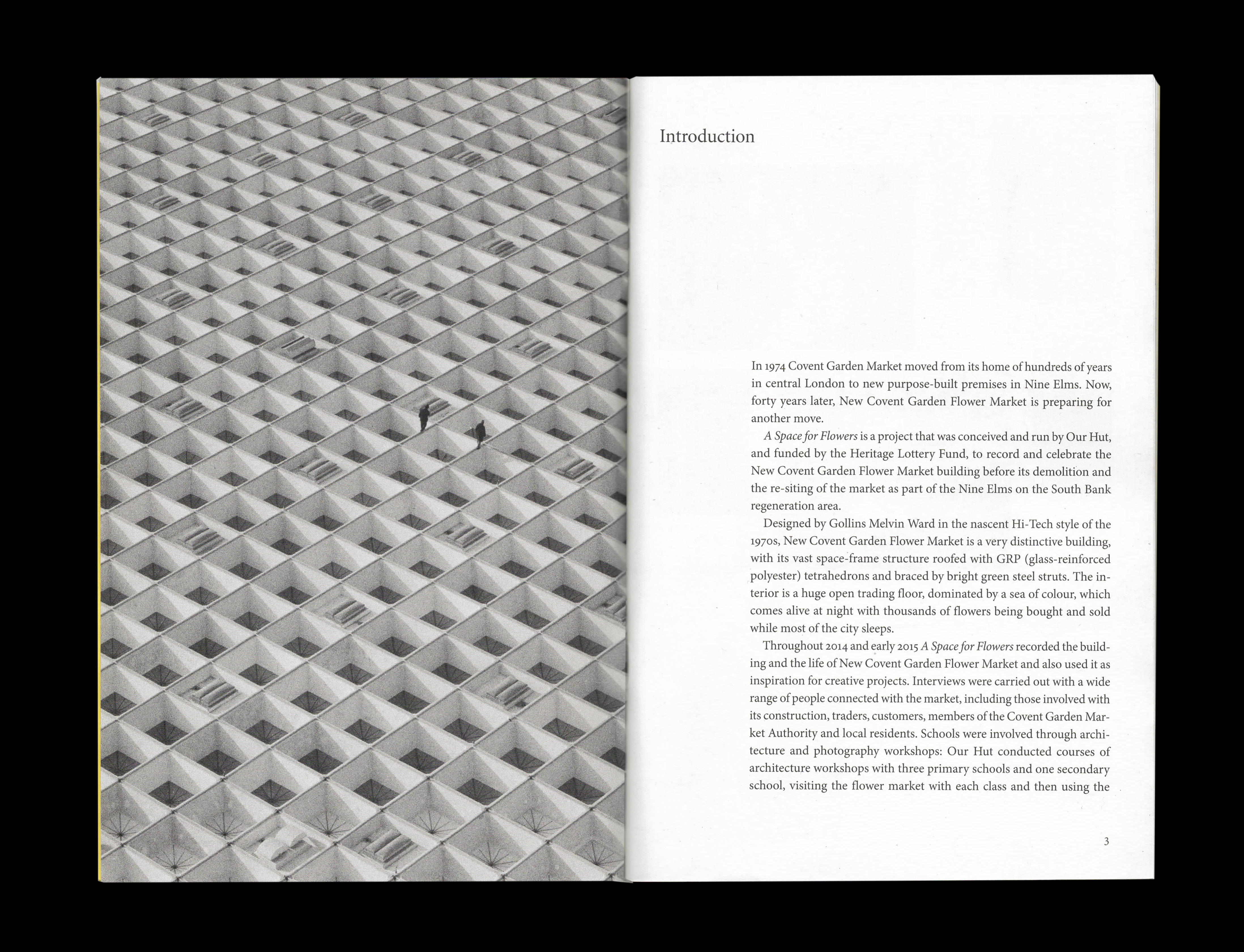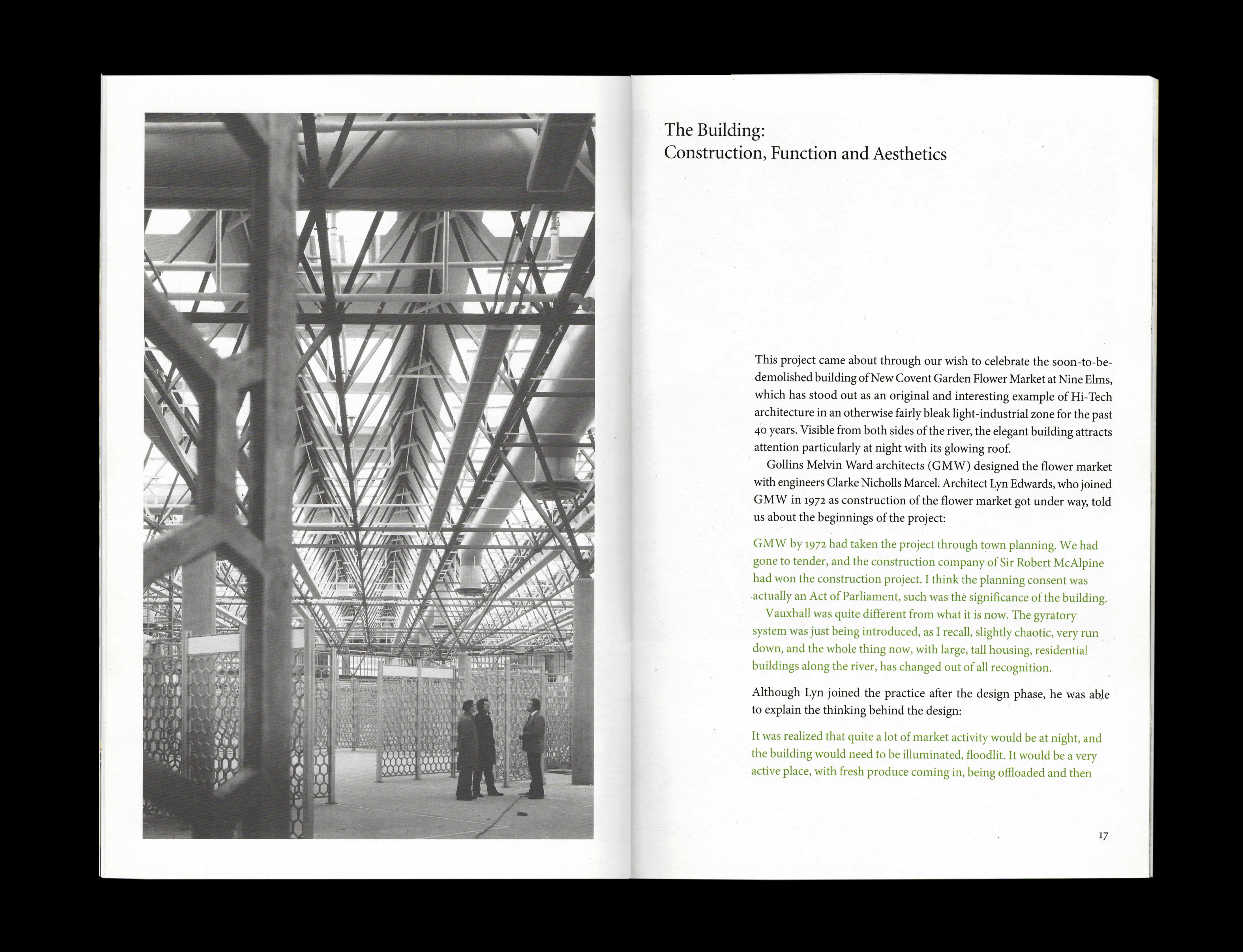 This book concludes a community arts project led by the architectural charity Our Hut focusing on the architecture and life of New Covent Garden Flower Market in Nine Elms designed by Gollins Melvin Ward, 1971/74. Featuring archive material and a range of oral histories from people connected to the market. Also including, models, photographs, drawings and films from school children, students and local community groups.